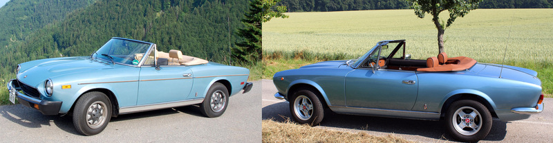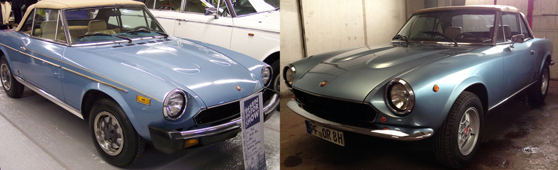 In der Farbe azurro-metallizzato wurde der Spider in der US-Version CS0 im Jahr 1982 nach Kalifornien an die Erstbesitzerin ausgeliefert. Ab 2010 erfolgte mit dem Übergang in die Sammlung Reitz der Umbau auf die Version europäischer Vorgängermodelle sowie eine vollständige Restauration. Die cognacfarbene Ausstattung verleiht dem mit Einspritztechnik ausgestatteten 124er eine individuelle Eleganz.